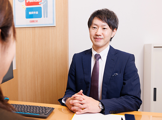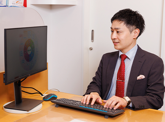 また、保険だけでなく老後や将来に向けての資金計画を一緒に考えたりします。対応は基本、担当者一人で行います。必要に応じて、お客さまの相談分野に強いスタッフが一緒に参加する事もあります。我々の考え方は「担当者のお客さま」ではなく、「店舗・会社のお客さま」です。大切な事は、お客さまに「ここに来てよかった」と感じていただく事です。そのために、スタッフが一丸となって対応します。